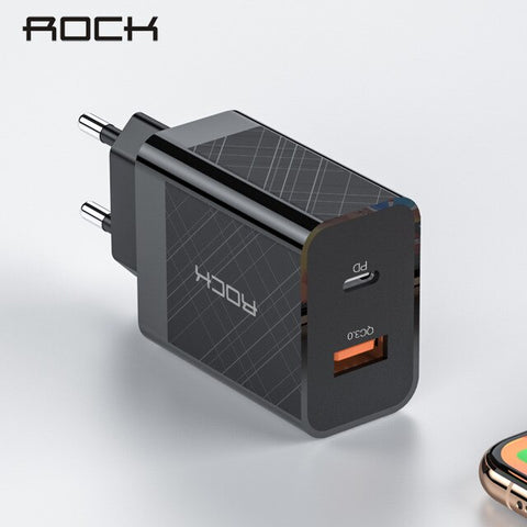 ROCK Fast Charger PD QC 3.0 QC 36W USB EU US Plug for iPhone X max 8 plus For Redmi Note 7 Mobile Phone Adapter